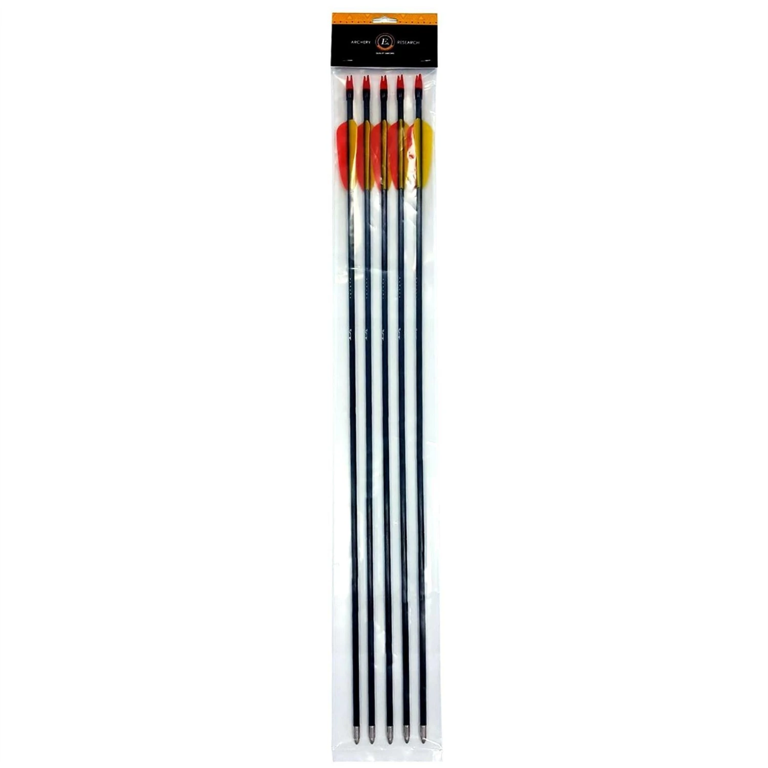 Pack of 5 28″ Fibreglass arrows by EK Archery.