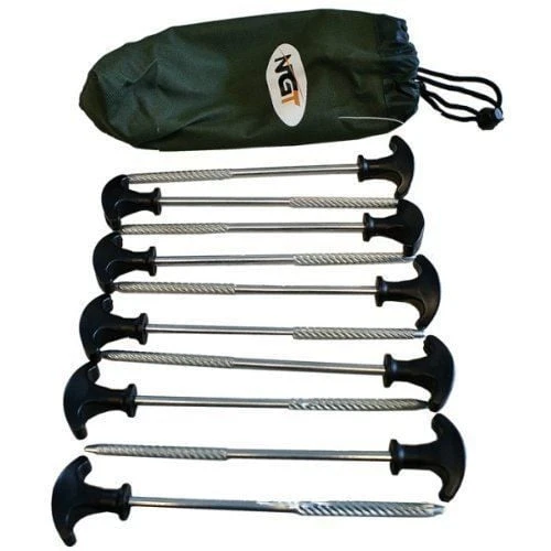 A pack of 10 * 8 inch bivvy pegs (20cm) in a bag.