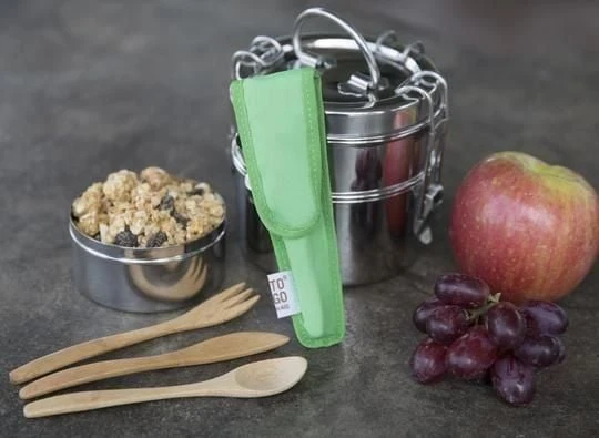 - Utensil case is made from 100% post-consumer recycled plastic bottles
