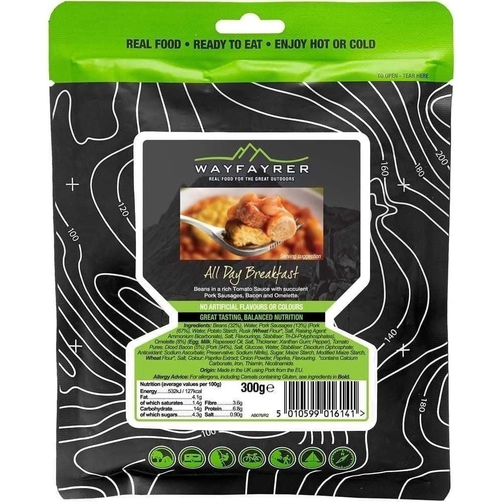 Beans (32%), Water, Pork Sausages (12%)(Pork (62%), Water, Rusk (Wheat Flour*), Salt, Raising Agent (E503(ii)), Salt, Pork Rind, Sugar, Spice Extracts, Stabiliser: Calcium Lactate; Spices, Mustard Flour, Sage), Omelette (8%) (Egg, Milk, Rapeseed Oil, Salt, Thickener: Xanthan Gum; Pepper), Tomato Puree, Diced Bacon (5%) (Pork (94%), Salt, Glucose, Water, Stabiliser: Disodium Diphosphate; Antioxidant: Sodium Ascorbate; Preservative: Sodium Nitrite), Sugar, Maize Starch, Modified Maize Starch, Wheat Flour*, Salt, Colour: Paprika Extract; Onion Powder, Paprika, Flavouring. *contains Calcium Carbonate, Iron, Thiamin, Nicotinamide.