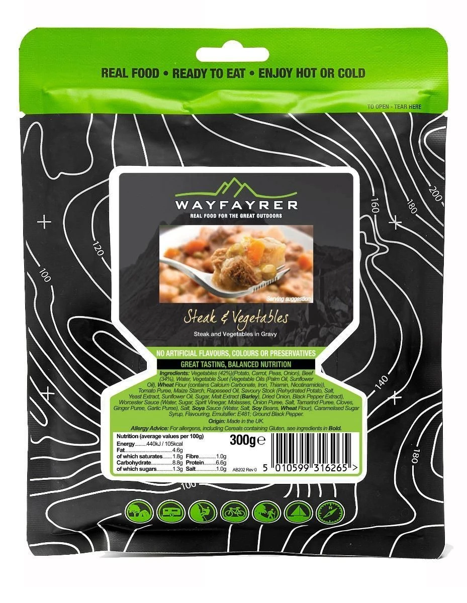 Vegetables (60%)(Potato, Carrot, Onion, Peas), Beef (16%), Water, Vegetable Suet (Vegetable Oils (Palm Oil, Sunflower Oil), Wheat Flour*), Modified Maize Starch, Tomato Puree, Rapeseed Oil, Yeast Extract, Beef Stock (Beef Stock, Water, Yeast Extract, Salt, Sugar, Lemon Juice Concentrate, Beef Fat), Maize Starch, Worcester Sauce (Water, Sugar, Spirit Vinegar, Molasses, Onion Puree, Salt, Tamarind Puree, Cloves, Ginger Puree, Garlic Puree), Soya Sauce (Water, Salt, Soy Beans, Wheat Flour*), Spices, Emulsifier: E481; Colour: Caramelised Sugar Syrup. *contains Calcium Carbonate, Iron, Thiamin, Nicotinamide.